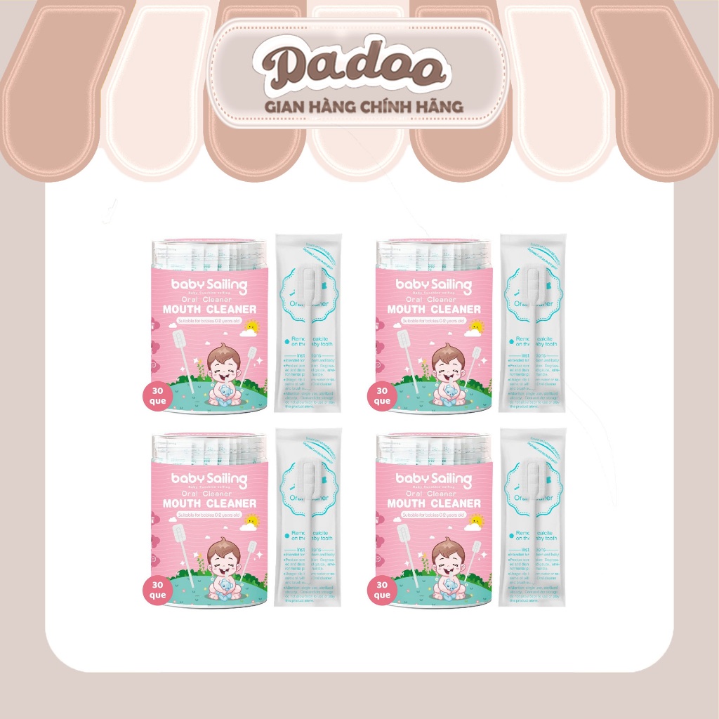 [ DADOO ] COMBO 4 Que Tưa Lưỡi, Rơ Lưỡi Baby Sailing Oral Cleaner Thiết kế 3D Bông Nén Kháng Khuẩn, Hộp 30 que
