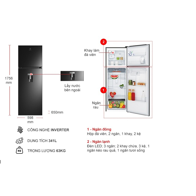 ETB3760M-H - Tủ lạnh Electrolux Inverter 341 lít ETB3760M-H - HÀNG CHÍNH HÃNG