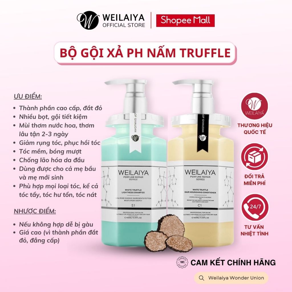 Bộ Dầu Gội Xả Phục Hồi Nấm Truffle Weilaiya Giúp Tóc Suôn Mượt, Giảm Gãy Rụng, Hư Tổn