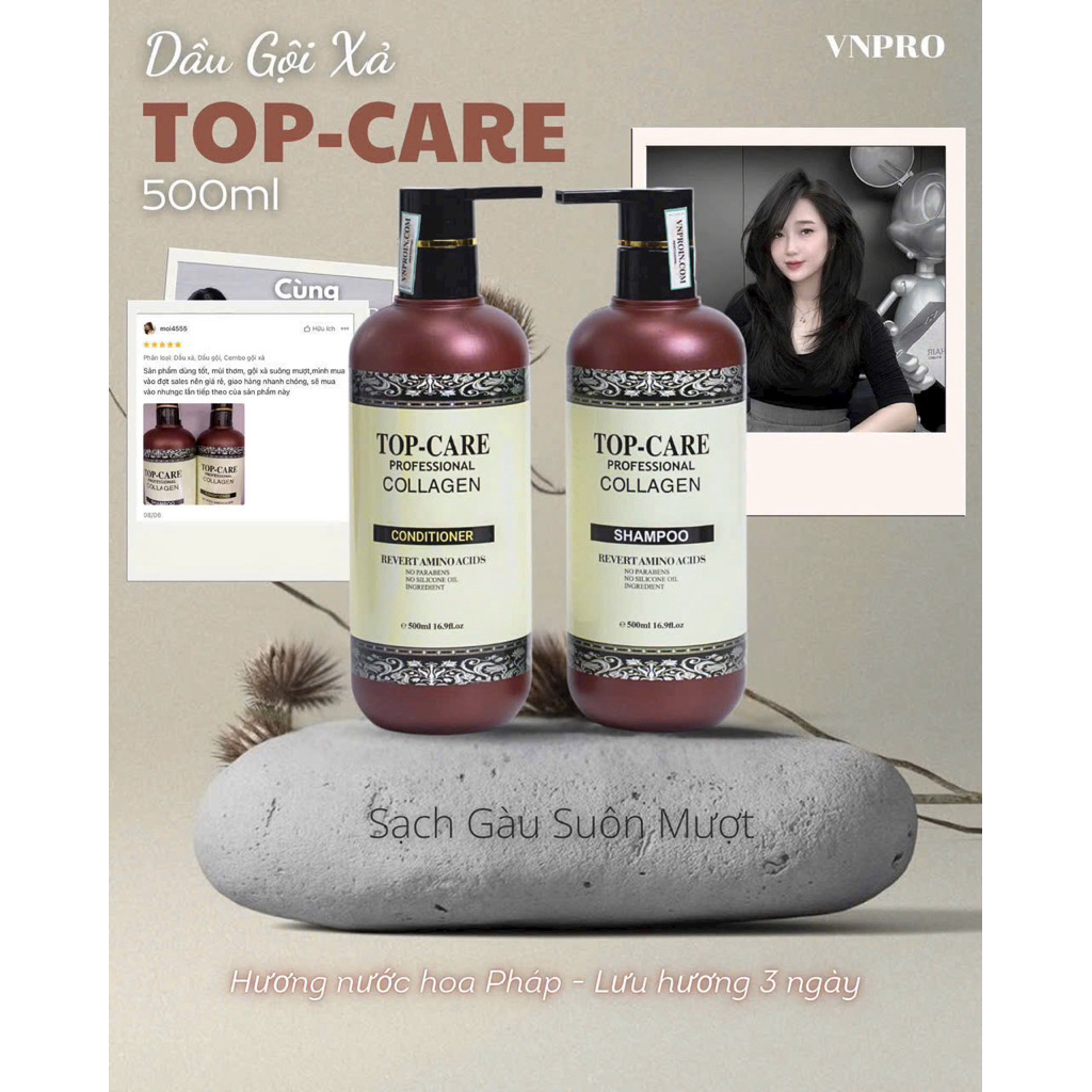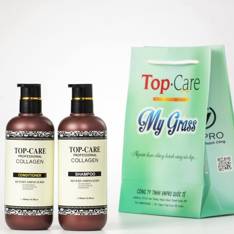 Cặp dầu gội xả Top Care Collagen 500ml/950ml giúp tóc mềm mượt, phục hồi hư tổn, giúp tóc chắc khoẻ