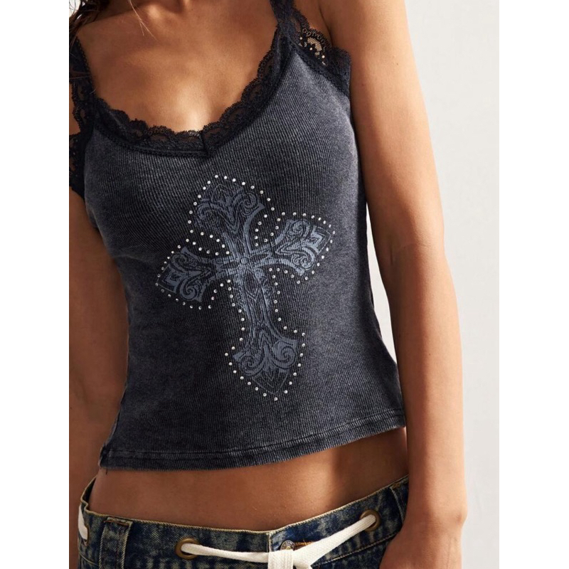 [ORDER 7-10 NGÀY] Áo hai dây hoạ tiết chữ thập - Just.Peachy