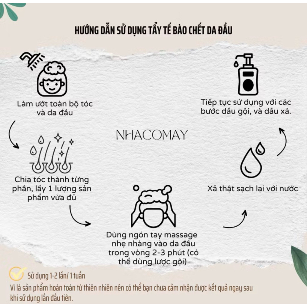 Tẩy tế bào chết da đầu Trà xanh bạc hà Nhà cô Mây - Sạch gàu, detox, giảm dầu, giảm ngứa, tơi phồng tóc, làm sạch tóc.