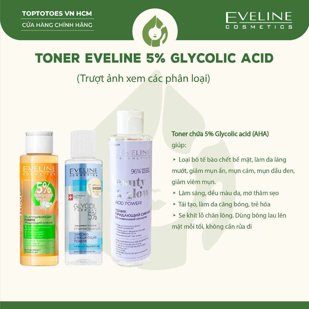 [HÀNG NHẬP KHẨU] Toner Eveline 5% Glycolic acid làm da căng bóng, sáng mịn, mờ thâm sạm