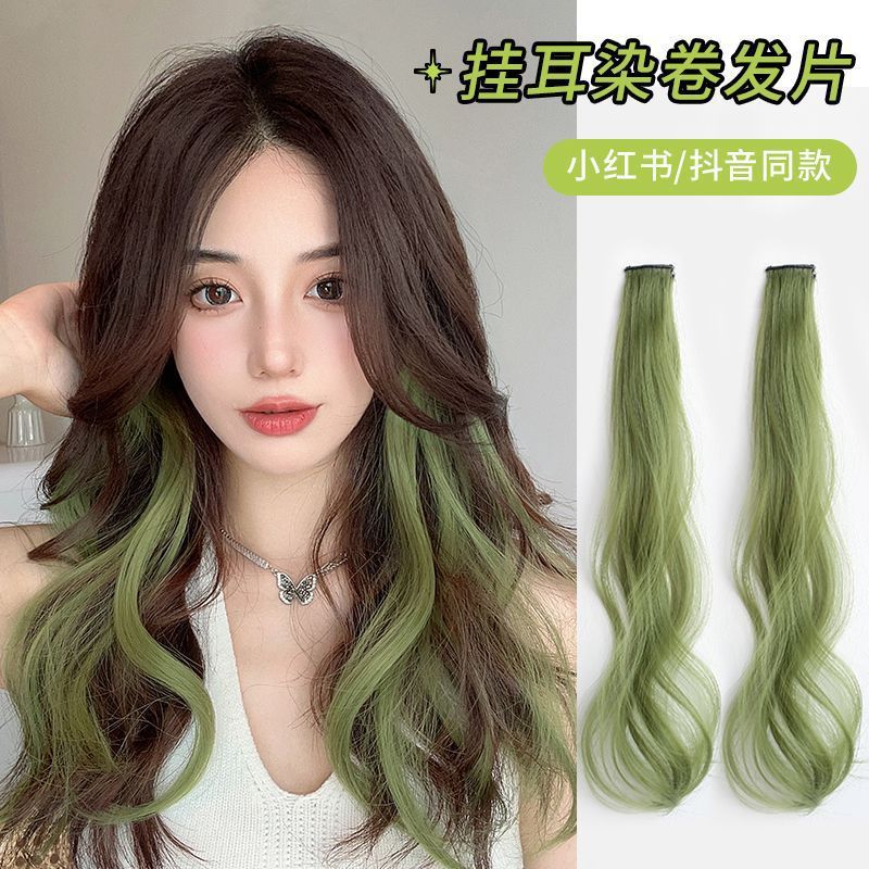 Tóc giả mảnh màu xoăn tự nhiên, phù hợp cho mùa hè, dễ dàng gắn vào tóc thật với móc thuốc nhuộm một thể hồng xanh
