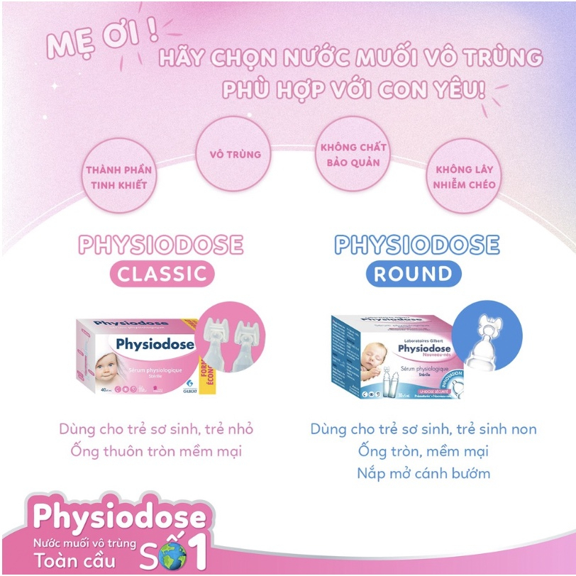 Nước muối sinh lý Physiodose ống đơn liều tiện lợi, rửa, làm sạch, vệ sinh tai, mắt, mũi cho bé, an toàn với trẻ sơ sinh