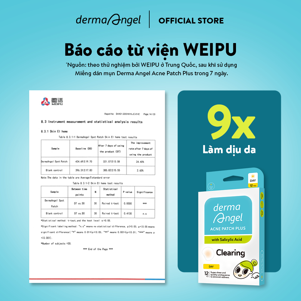 Miếng Dán Mụn DermaAngel Acne Patch Plus Giảm Viêm Mụn Với Salicylic Acid 12 Miếng