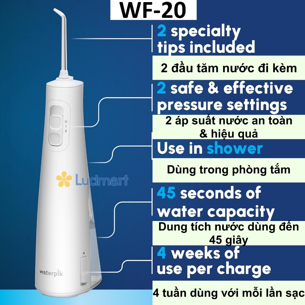 Máy tăm nước cầm tay Waterpik Cordless Advanced Water Flosser nhiều màu [Hàng Mỹ]