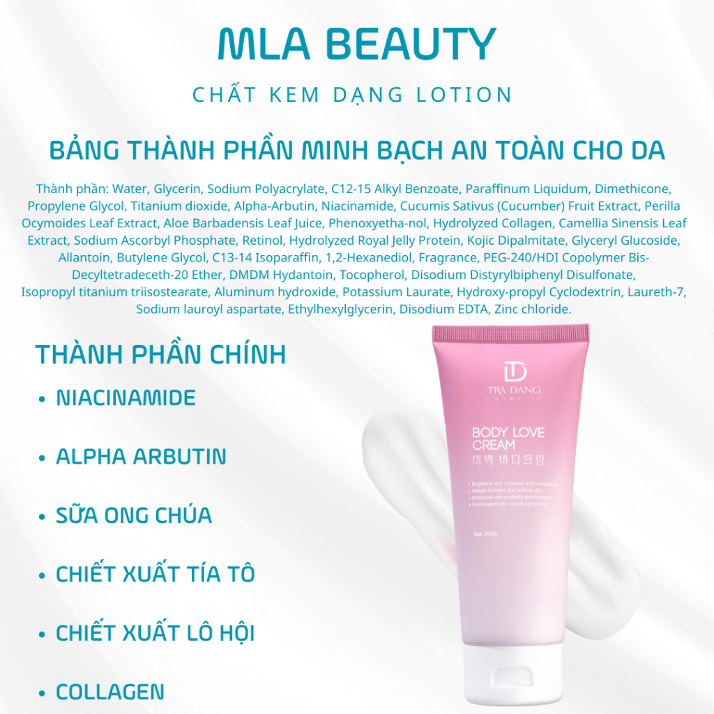 Kem Dưỡng Thể Body Love Cream - Giúp Mịn Màng Trắng Sáng Làn Da Trà Đặng Cosmetic 200g