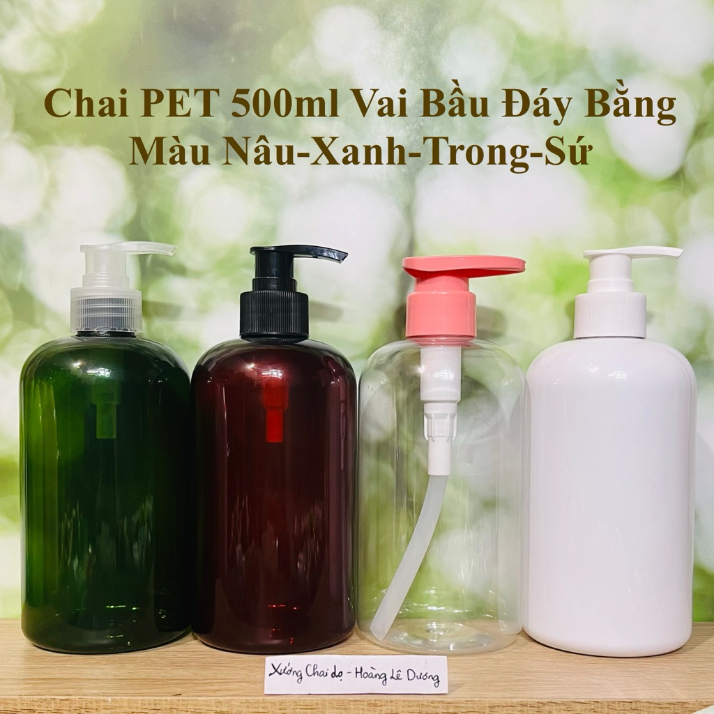 Chai nhựa PET 500ml Bầu màu Xanh,Trong,Nâu,Sứ. Đựng kem body,dầu gội,sữa tắm,chiết đựng mỹ phẩm… có kèm vòi bơm, vòi xịt