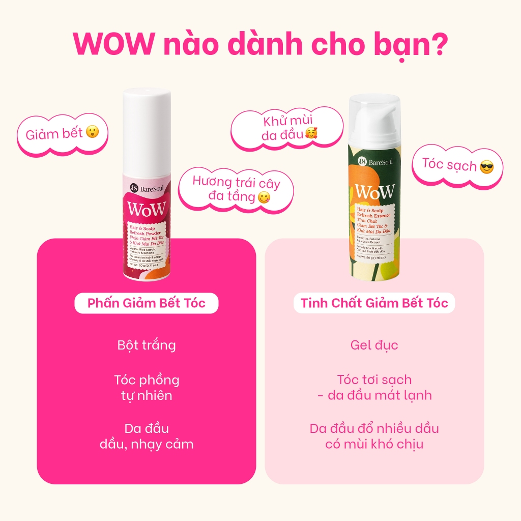 Phấn giảm bết, kiềm dầu, làm phồng & khử mùi da đầu, không cặn trắng với Bột gạo, Prebiotic & Betaine BareSoul WOW 20g
