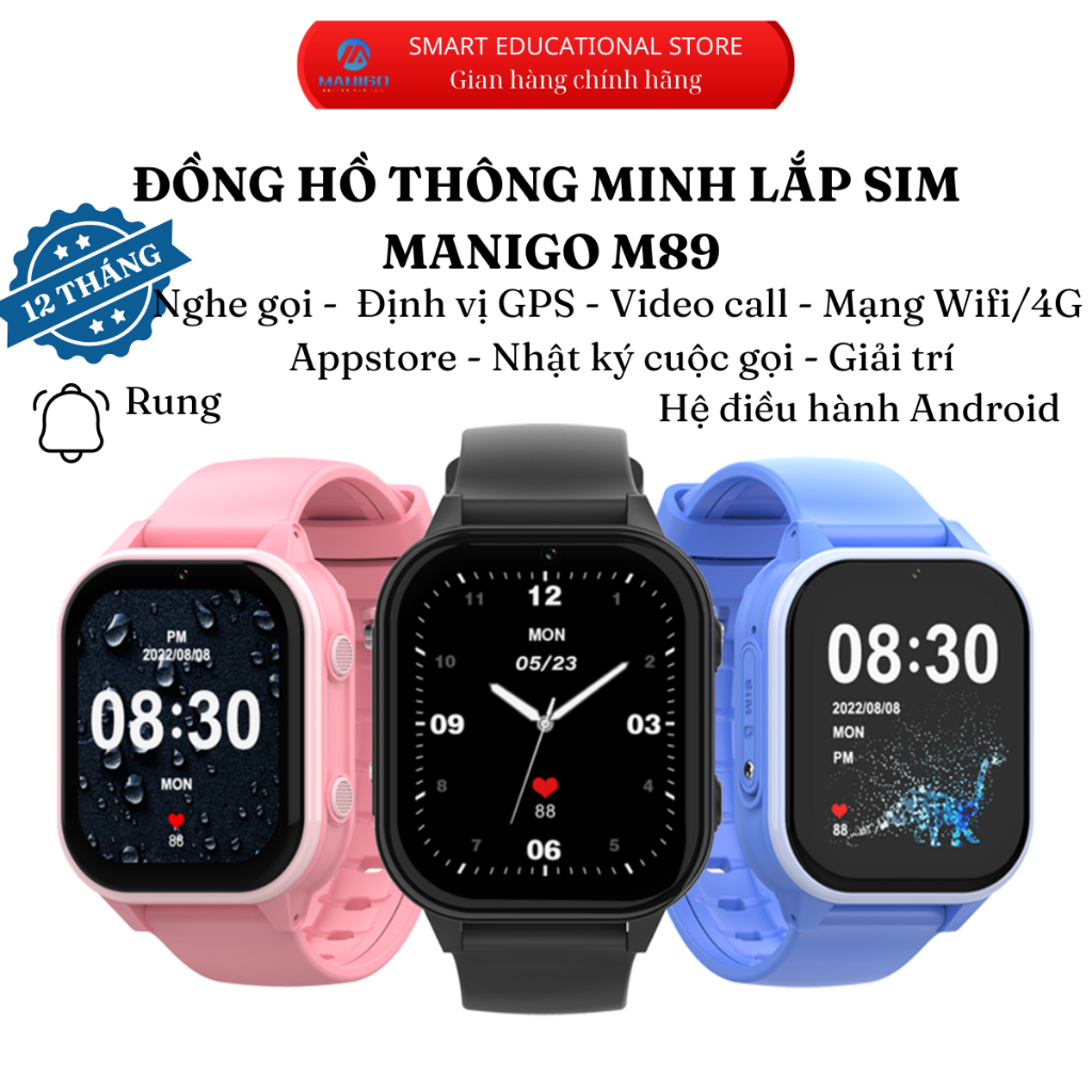 Đồng hồ thông minh trẻ em Manigo M89 Lắp sim nghe gọi định vị call video chống nước bảo hành 1 năm