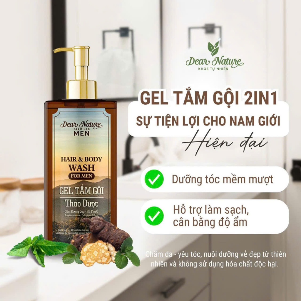 Dầu gội sữa tắm thảo dược cho nam Dear Nature giảm gàu giữ nếp sạch mụn mịn da 300ml
