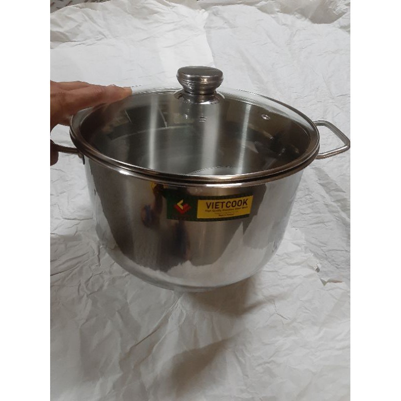 (FREE SHIP 0 Đ TOÀN QUỐC)Nồi inox luộc gà 3 đáy,đáy từ,nồi inox 3 đáy, size 28 ,30,32 Viêt Cook có nắp kính và nắp inox