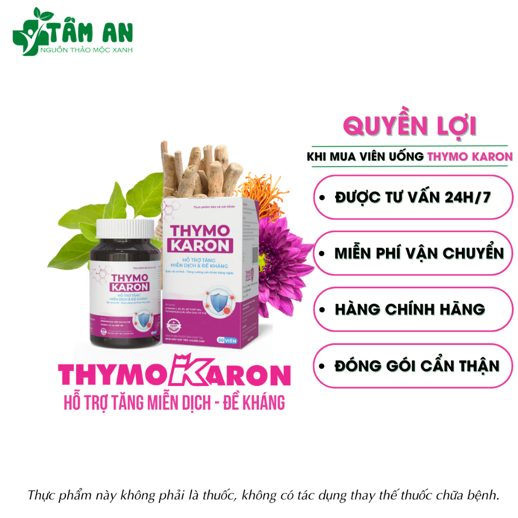 [2 HỘP] Viên Uống THYMOKARON Lọ 30 Viên - Hỗ Trợ Tăng Miễn Dịch - Hỗ Trợ Cơ Thể Đào Thải H.P.V - Thoát Khỏi Sùi Mào Gà