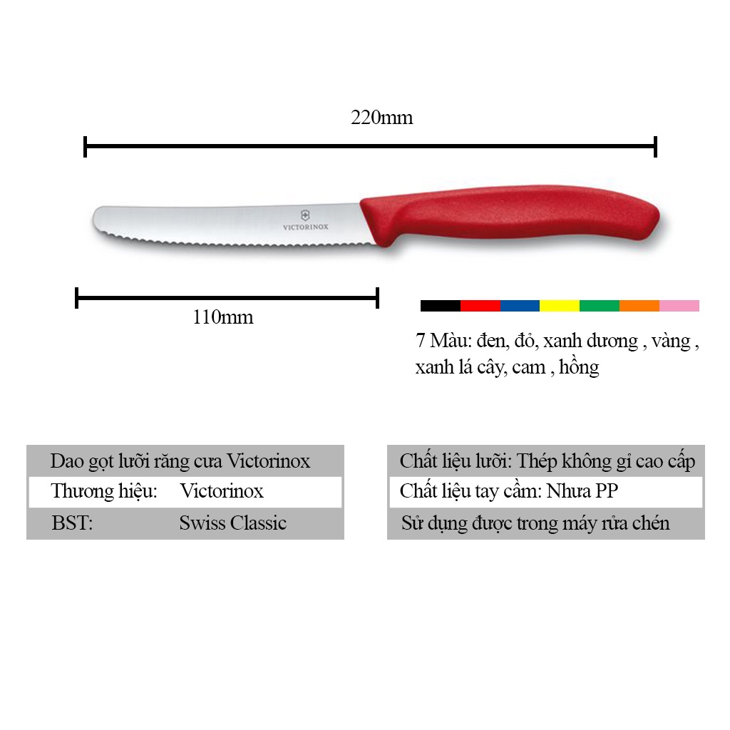 Dao Gọt Hoa Quả Victorinox Lưỡi Răng Cưa Inox 11cm Hàng Chính Hãng