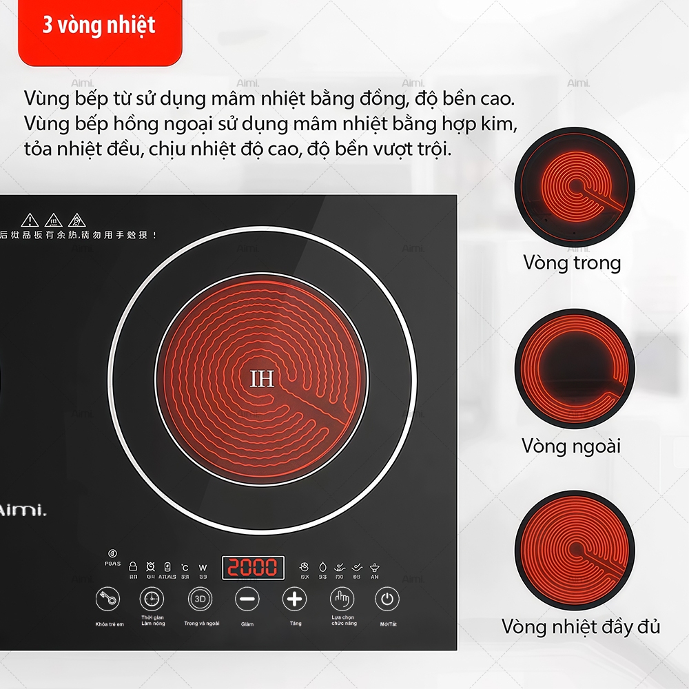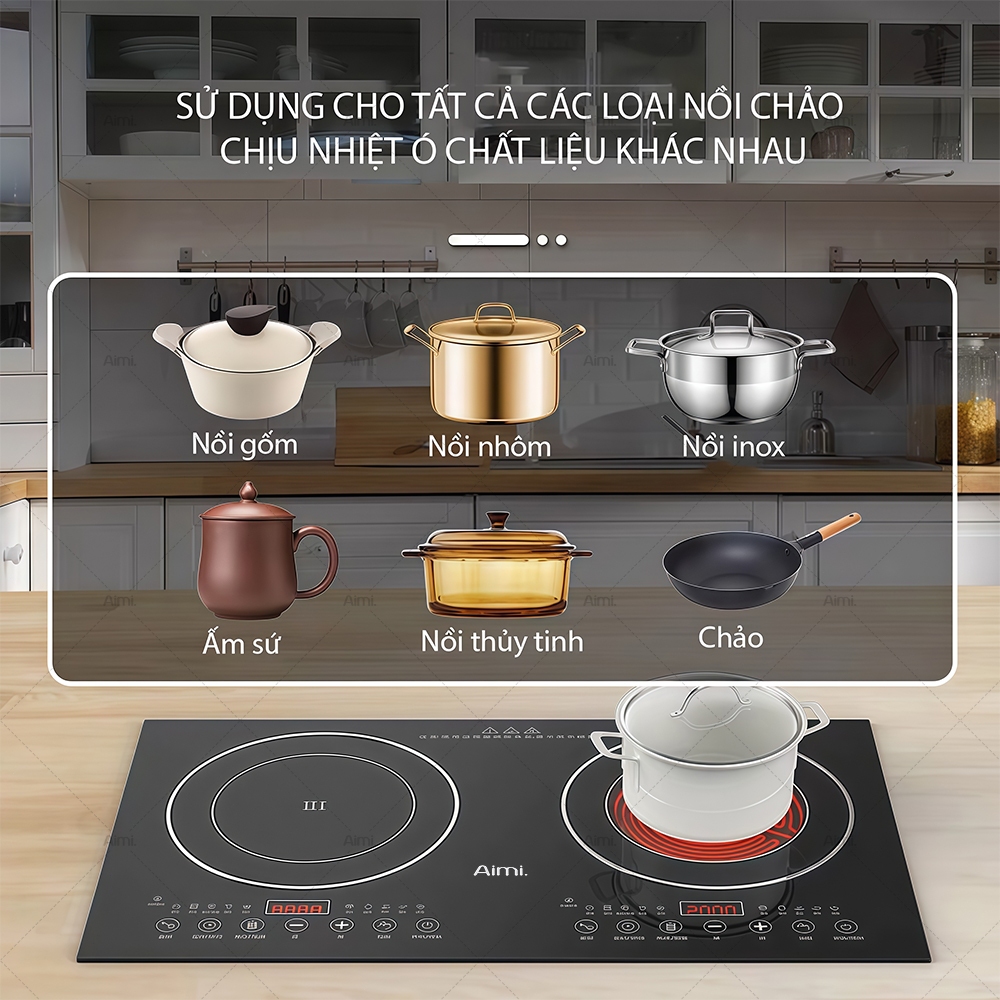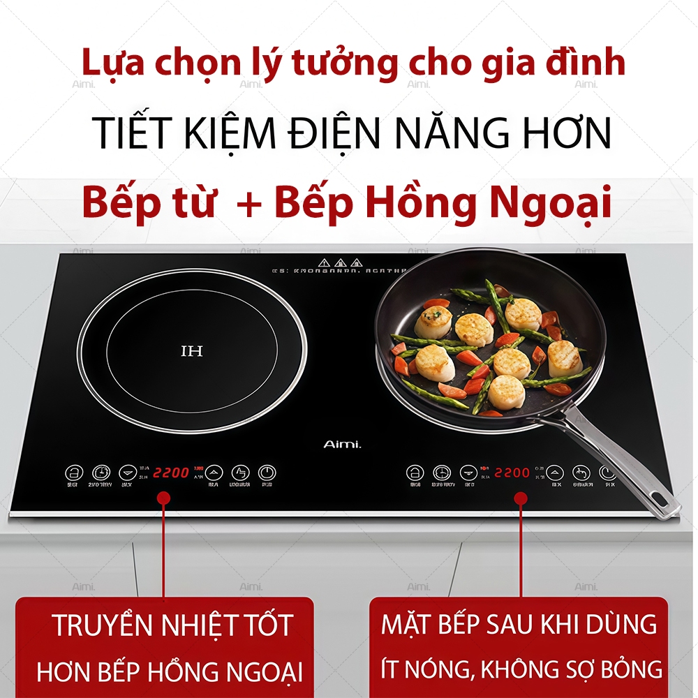 Bếp Hồng Ngoại Đôi Âm Dương Bếp Điện Từ Đôi Đa Năng Bếp Đôi Công Suất 4800W Mặt Kính Cường Lực