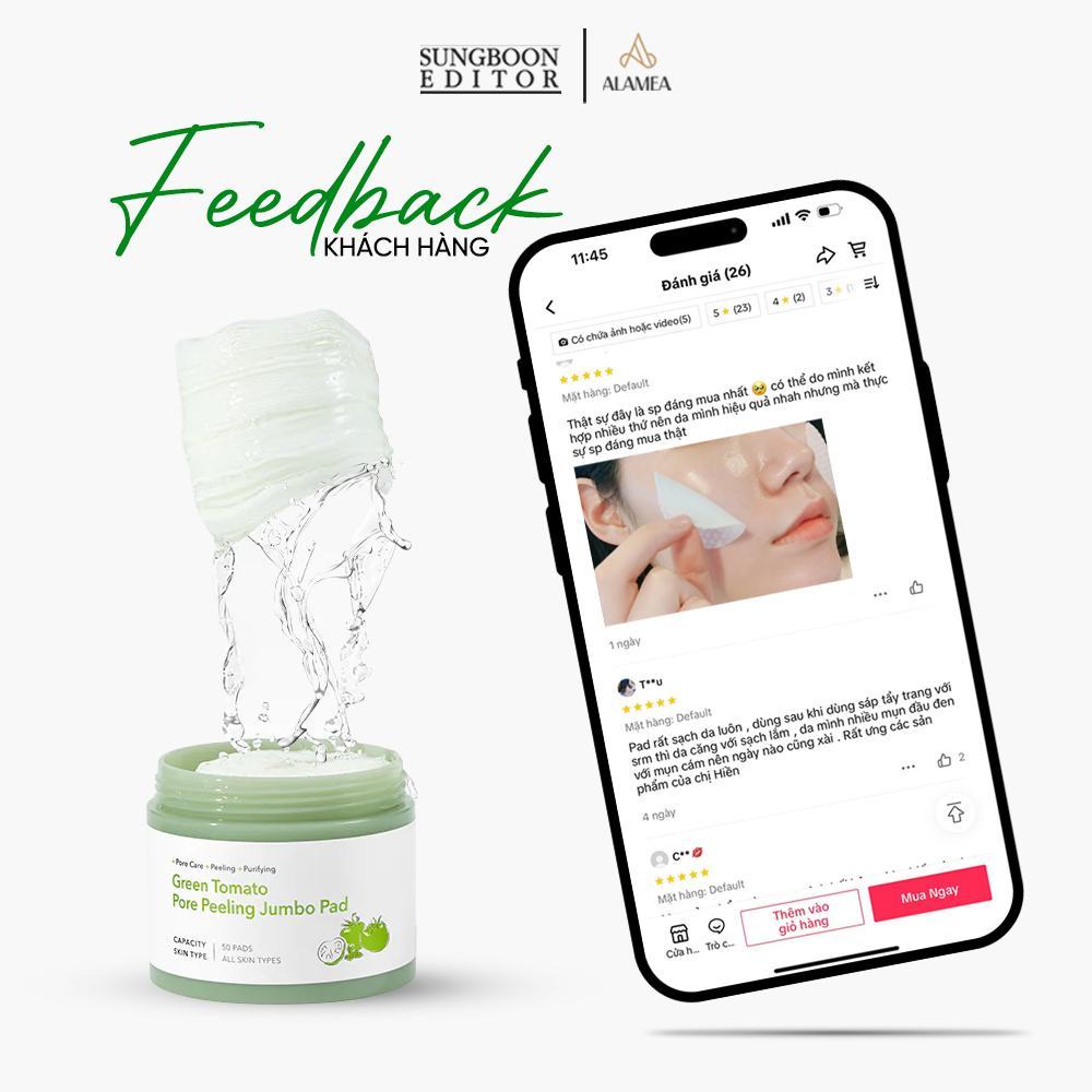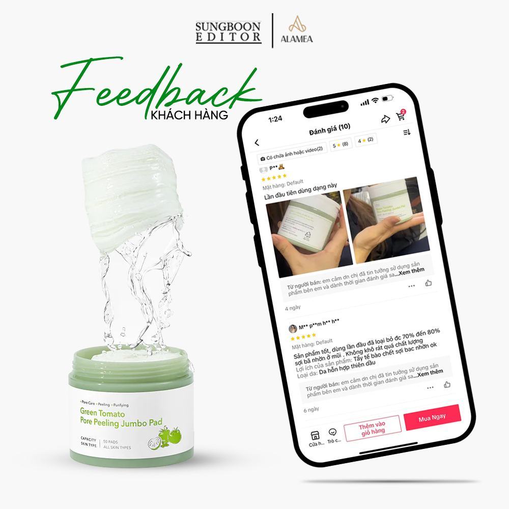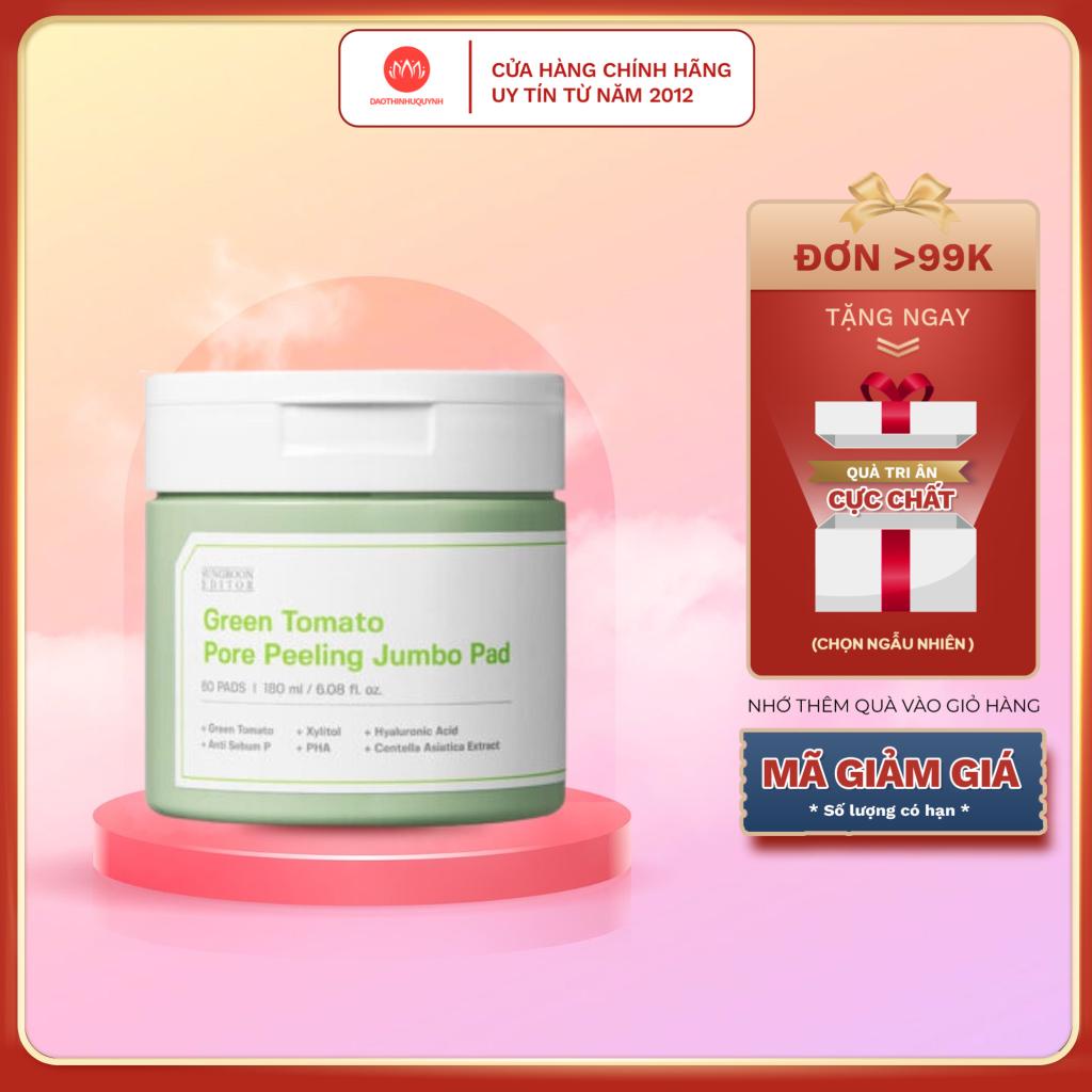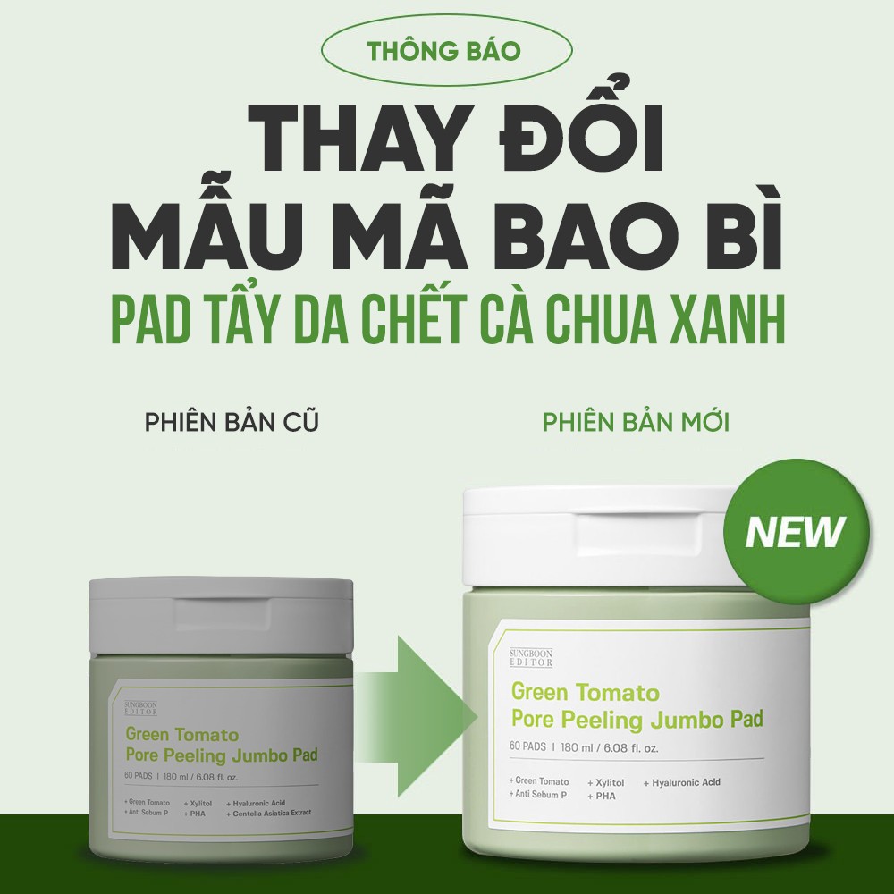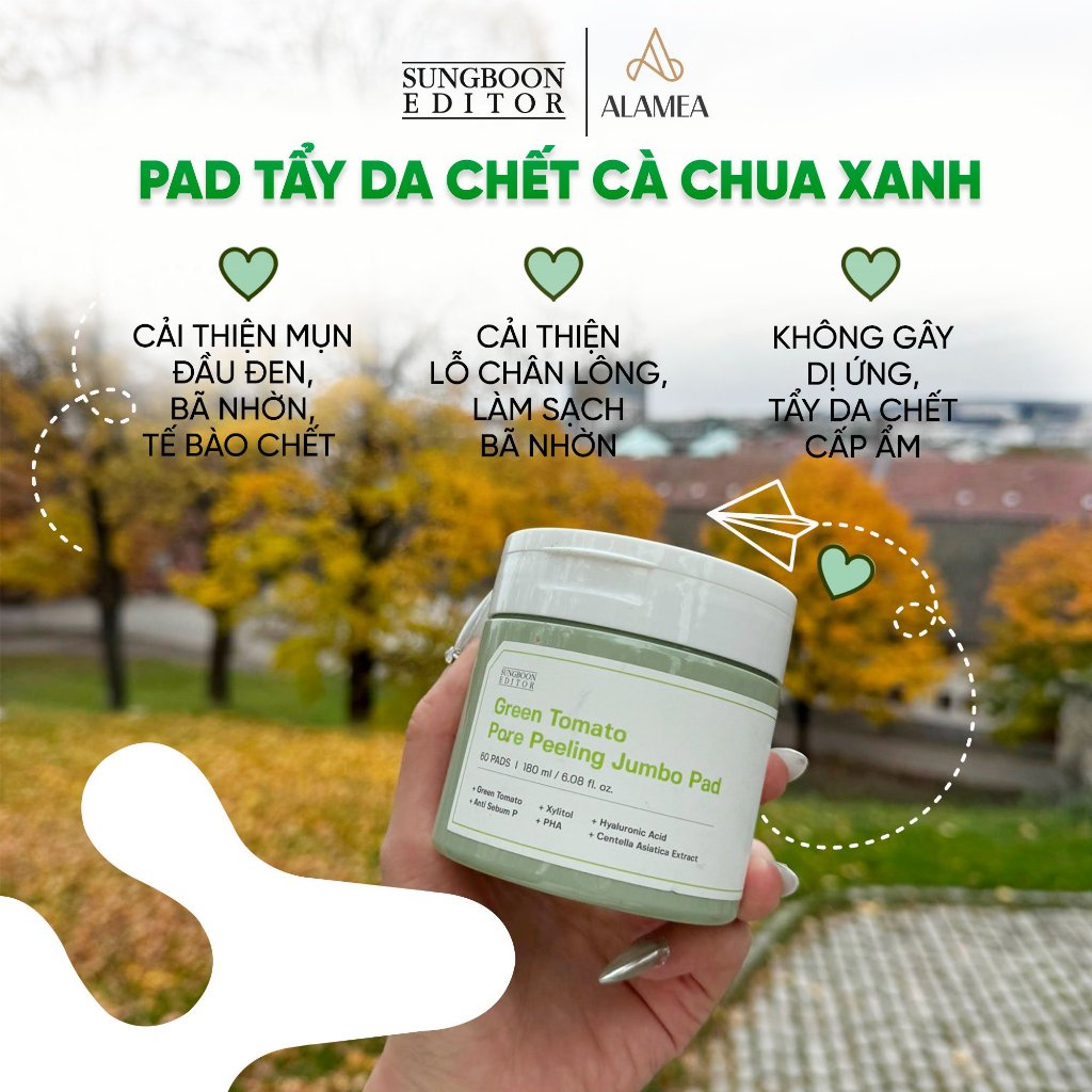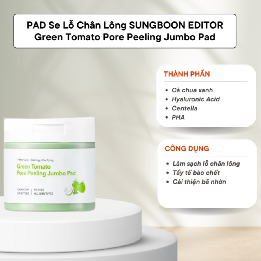 Toner pad tẩy da chết cà chua xanh Sungboon Green Tomato Pore Peeling Jumbo Pad 180ml 60 miếng