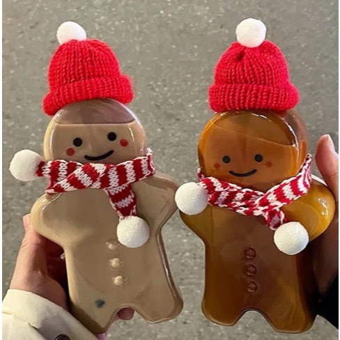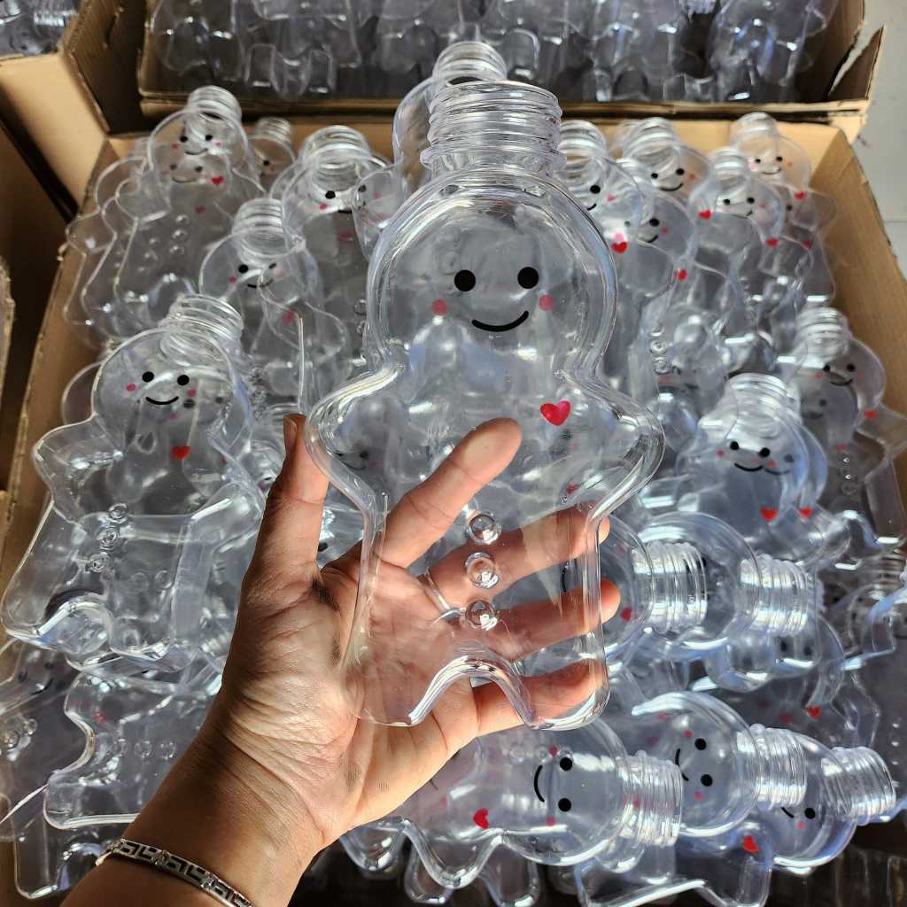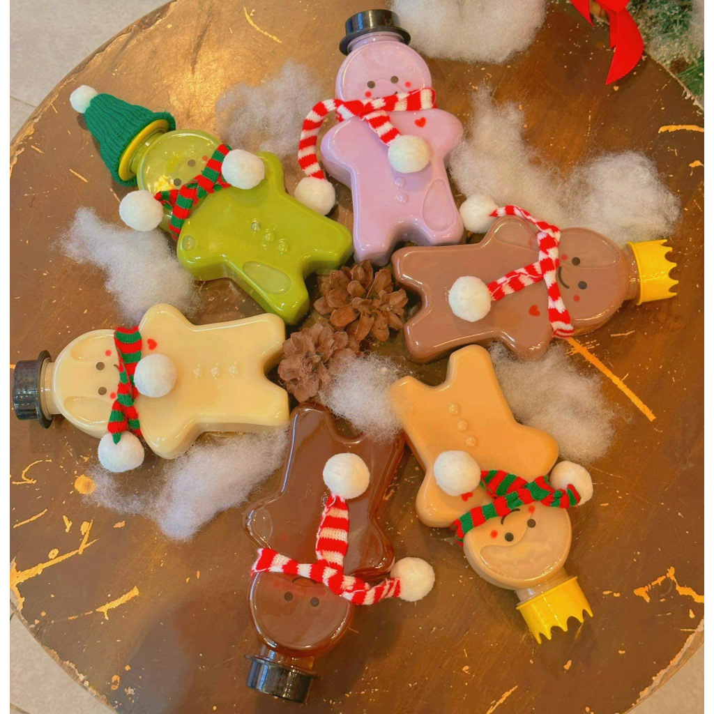 Combo10 Chai nhựa pet 500ml đựng trà sữa hình bánh quy gừng trang trí giáng sinh có in hình đáng yêu