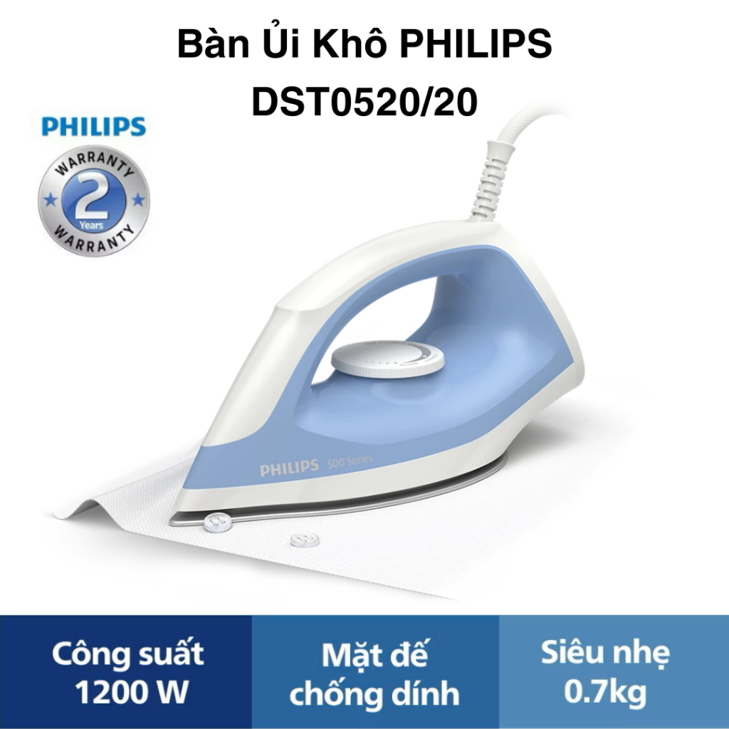 Bàn Ủi Khô Philips - DST0520/20, Công Suất 1200W, Hàng Chính Hãng - Bảo Hành 24 Tháng.