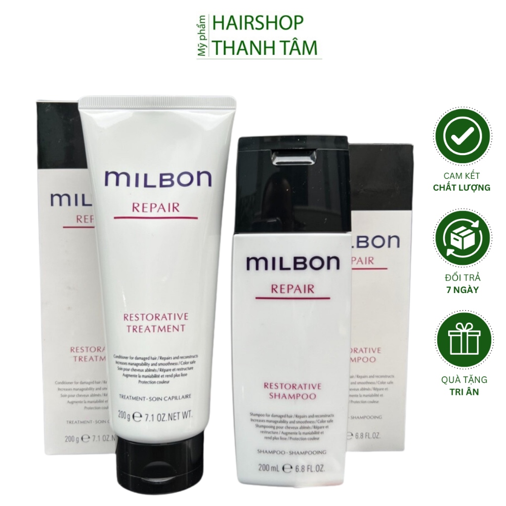 Dầu gội xả phục hồi tóc yếu và hư tổn Milbon Repair Restorative 200mlx2 [ New ], làm sạch nhẹ nhàng | THANH TÂM