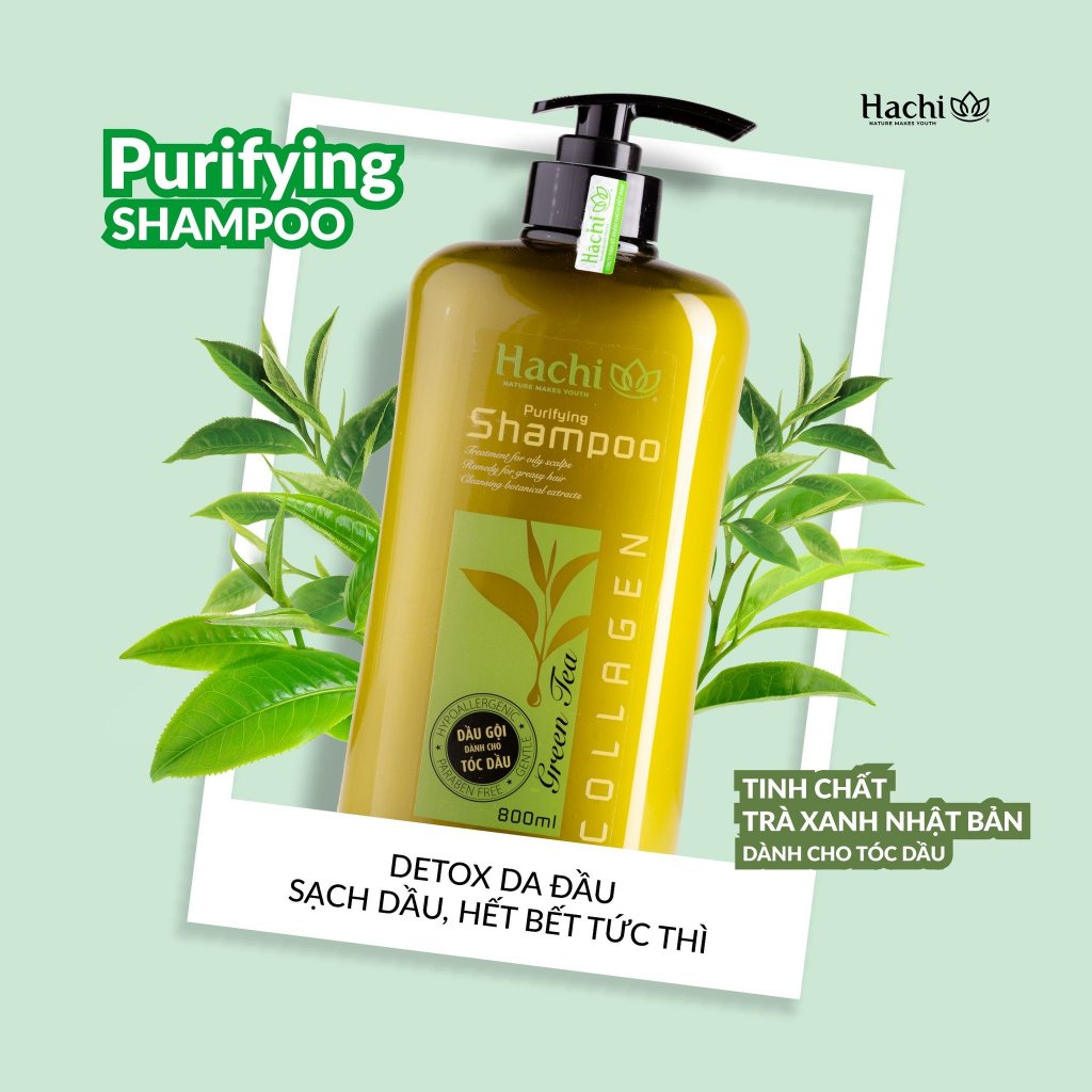 Dầu Gội + Xả chiết xuất trà xanh dành cho tóc dầu bết Hachi Purifying Green Tea
