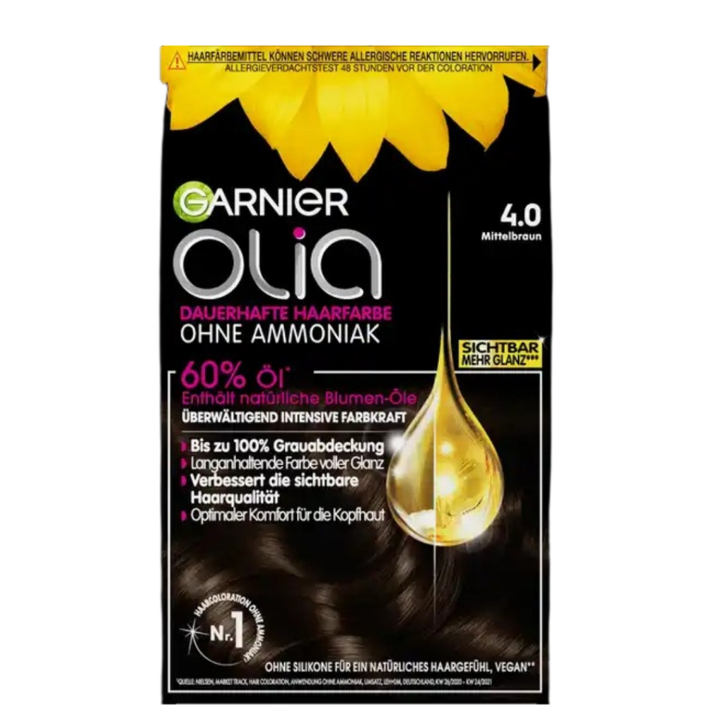 NHUỘM TÓC GARNIER OLIA phủ bạc CHỨA NHIỀU DẦU DƯỠNG (60% dầu dưỡng) hàng Đức