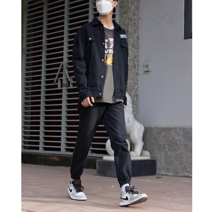 Áo bò nam dài tay màu đen in thêu chữ nổi VNXK Pon.mens