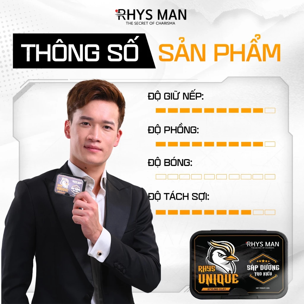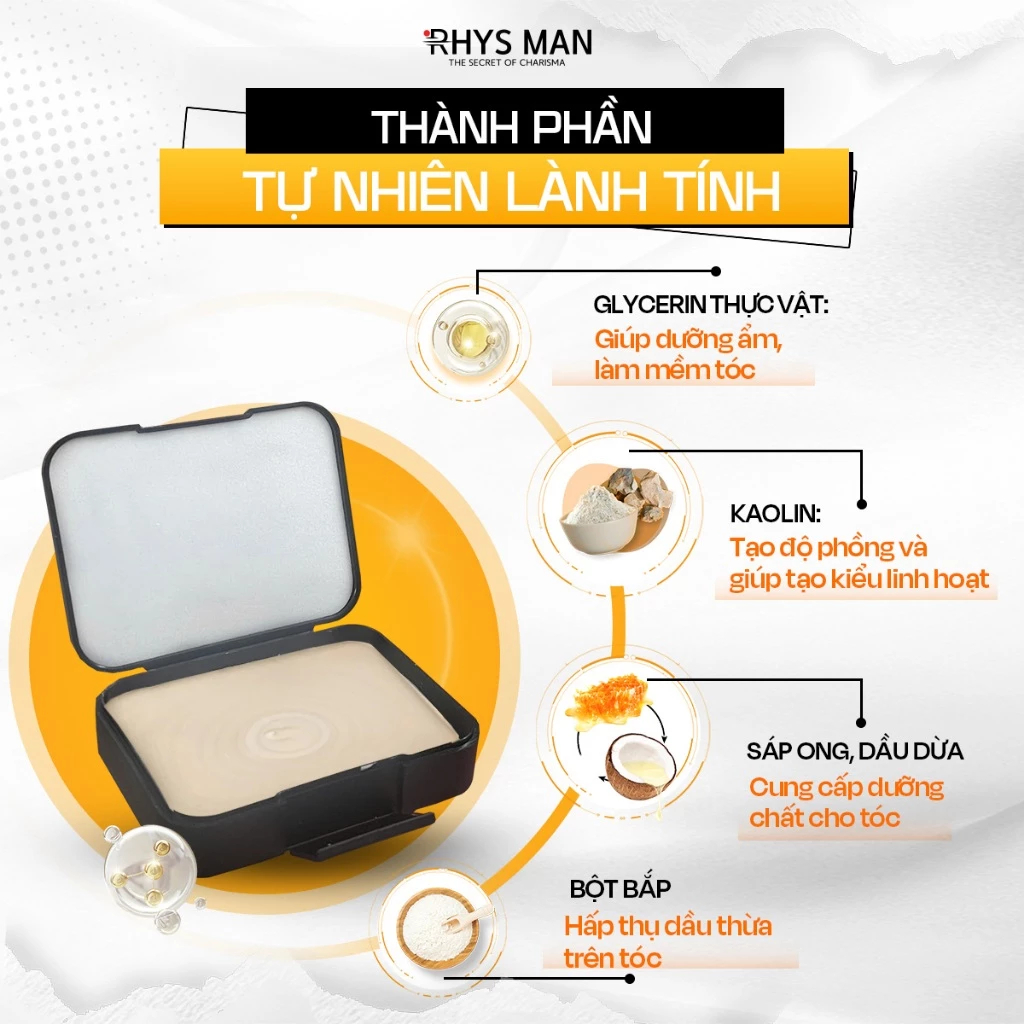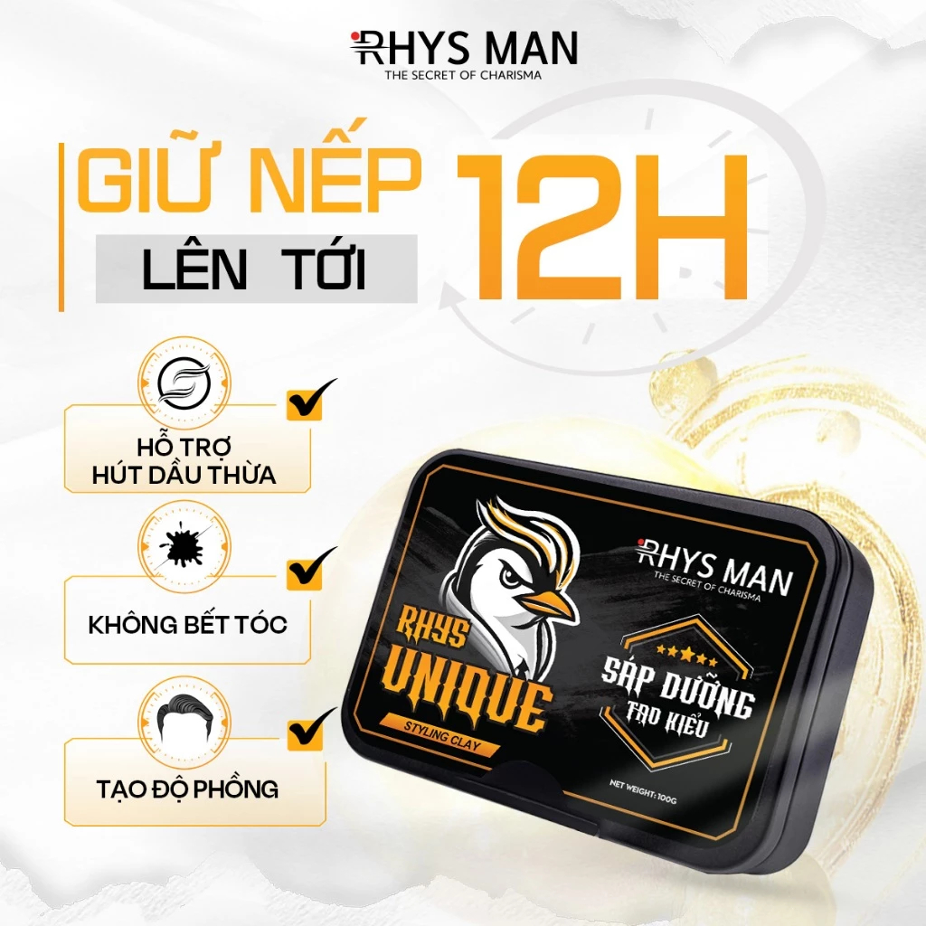 Sáp vuốt tóc nam RHYS MAN tạo kiểu tự nhiên, giữ nếp Rhys Unique