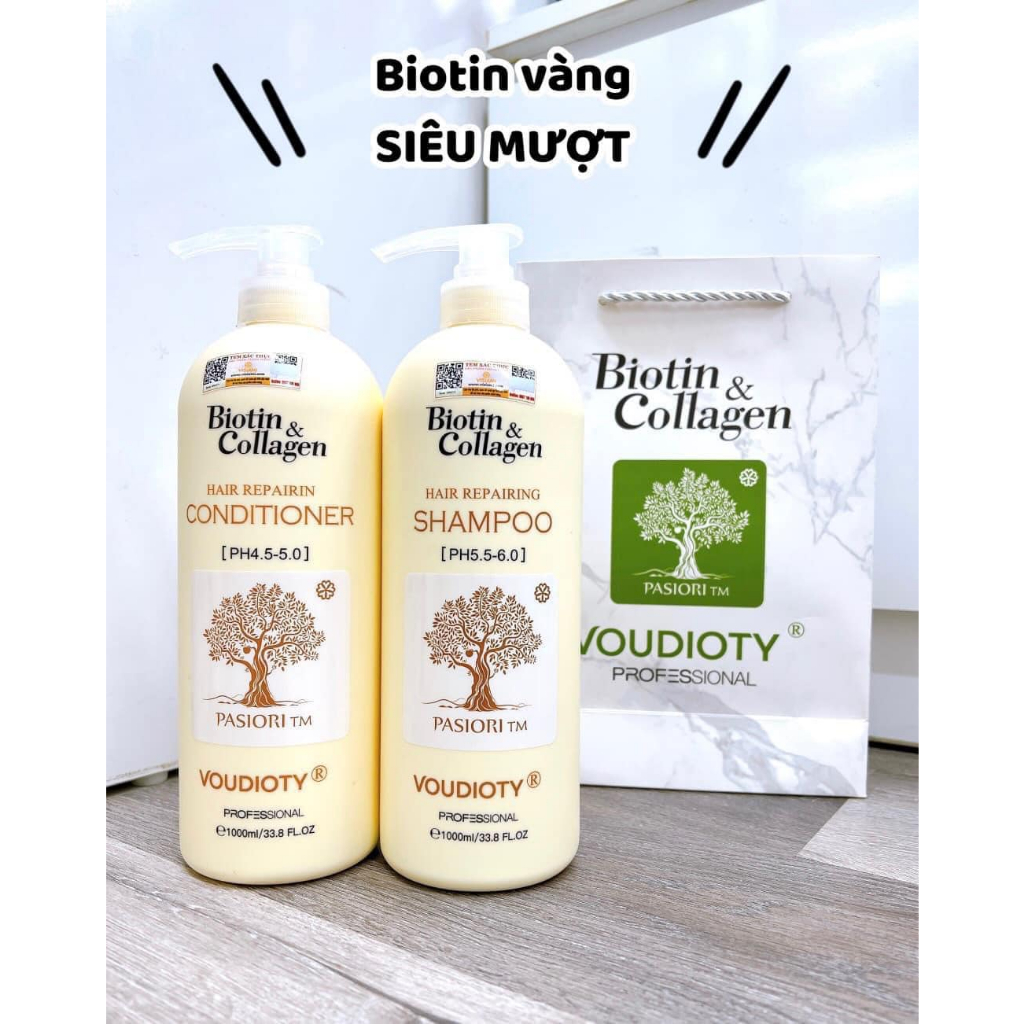 Dầu gội xả Biotin Collagen Voudioty chính hãng 2021, Cặp gội xả phục hồi hư tổn