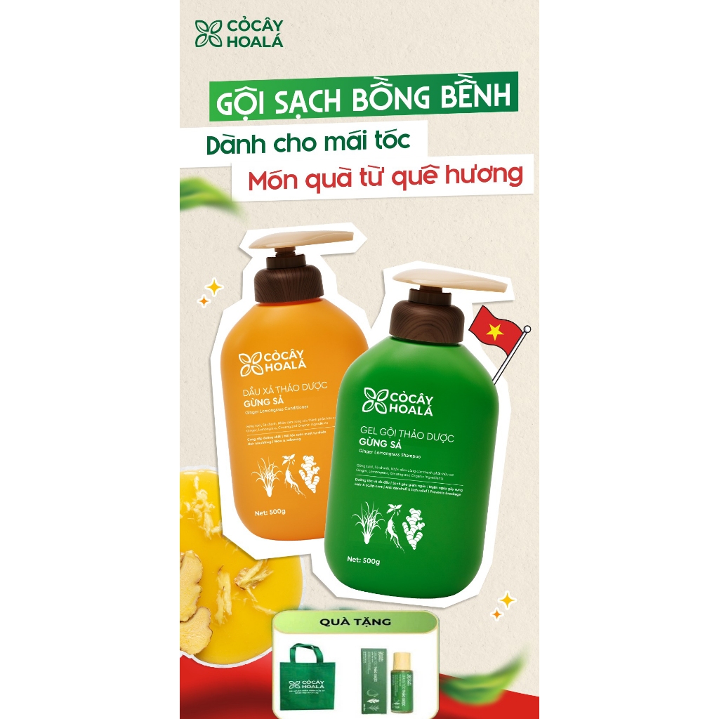 Dầu Gội Xả Hữu Cơ Gừng Sả Cỏ Cây Hoa Lá - Ngăn Dầu Bết Tóc Và Giảm Gàu Ngứa 500g