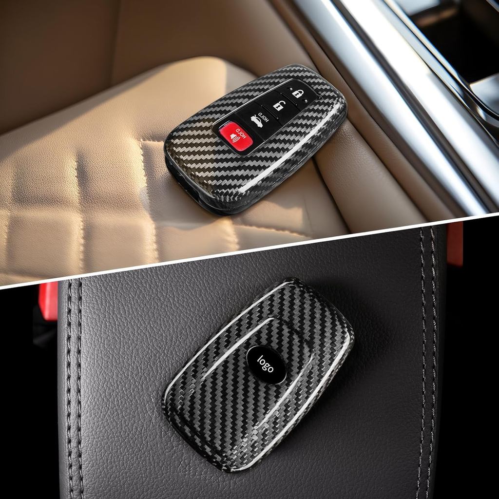Vỏ bọc chìa khóa sợi thủy tinh thật T-carbon Tương thích với Toyota Camry Avalon C-HR Prius Highlander Corolla GT86 RAV4 2018-2024 Giá đỡ bảo vệ chìa khóa thông minh, màu đen bạc