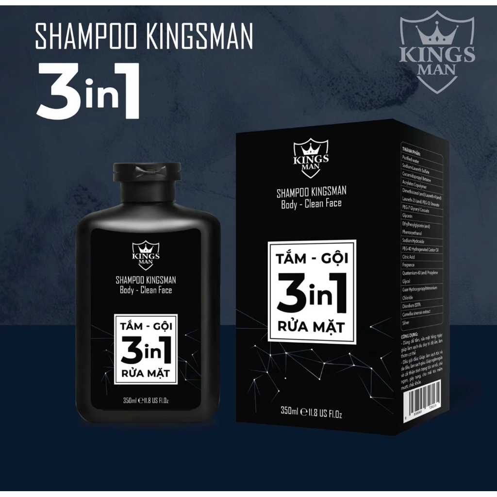[3 in1] Dầu gội, Sữa tắm nước hoa thơm lâu 3 in 1 Shampoo Kingsman 350ml