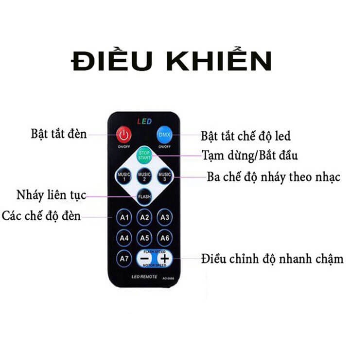 Đèn Led Xoay 7 Màu Cảm Ứng Theo Nhạc Trang Trí Sân Khấu, Vũ Trường, Quán Bar, Trang Trí Ngày Tết Lễ Hội