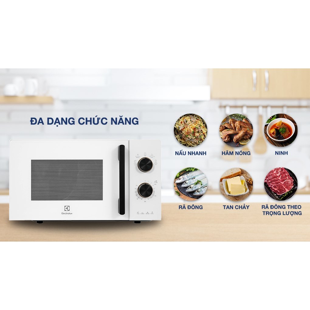 Lò vi sóng 20L Electrolux EMM20K22W, 5 mức công suất, điều khiển bằng nút vặn - SMC