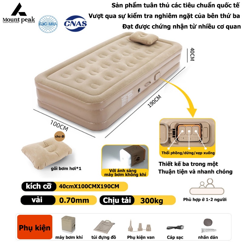 Đệm Hơi Tự Bơm | mount peak | Giường hơi đơn đôi | kèm bơm điện | Dùng Ở Nhà Hoặc Đi Cắm Trại