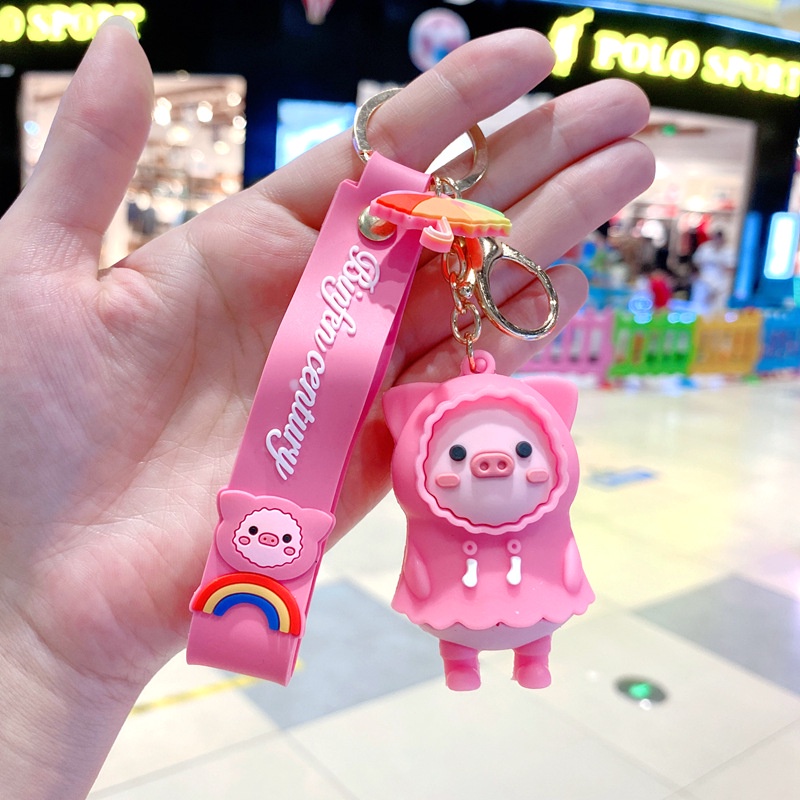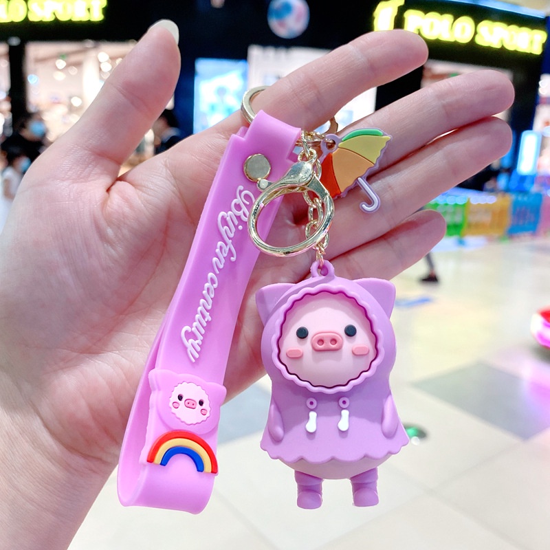 Móc khoá heo con hoạt hình chùm khăn xinh xắn, móc chìa khóa lợn con kèm dây cầu vồng thuuhaa1904 đeo túi, ví, balo
