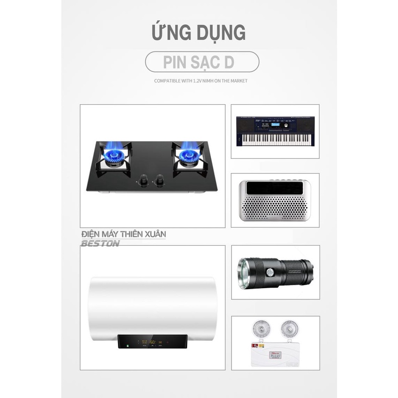 Pin đại sạc D BESTON 5000mAh dùng cho bếp ga, dèn pin, thiết bị công nghiệp, thay thế pin con ó ( (Vỉ 2 Pin)