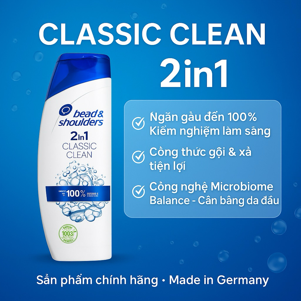 Dầu Gội Xả 2 Trong 1 Head & Shoulders Chống gầu, cho mái tóc suôn mượt Hàng Đức