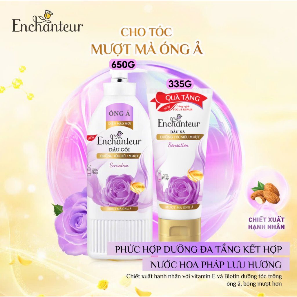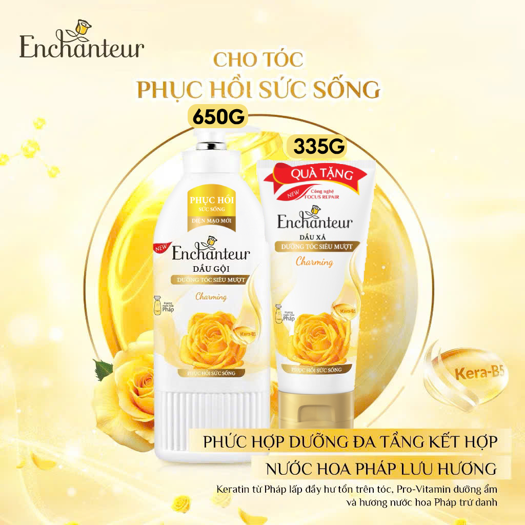 Combo Dầu gội và Dầu Xả Enchanteur Kera-B5 Charming dưỡng tóc siêu mượt và phục hồi 650g & 335g