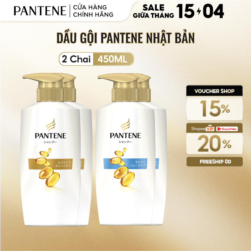 Combo 2 Chai Dầu Gội PANTENE Nhật Bản Chăm Sóc Hư Tổn/ Dưỡng Mềm Mượt 450MLx2