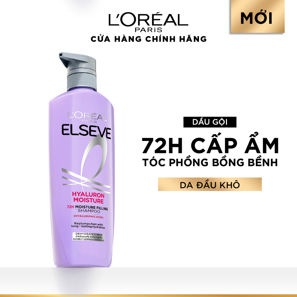 VB_ Bộ đôi dầu gội nhẹ bồng mái tóc Elseve 72H HA Moist da đầu khô hoặc Pure da đầu dầu L'Oreal Paris 620mlx2