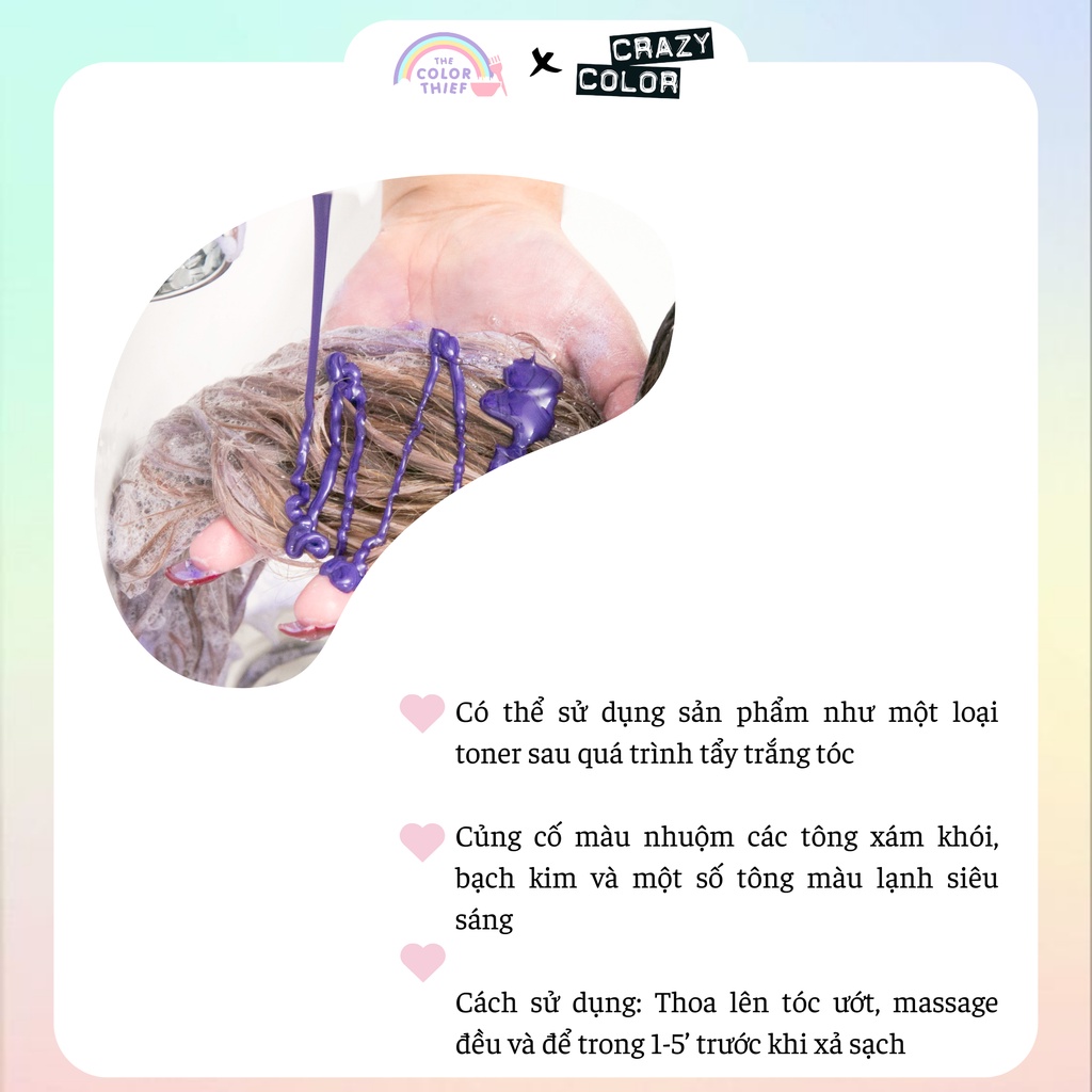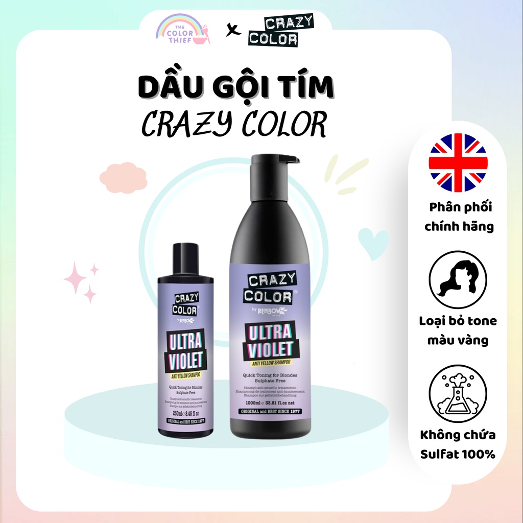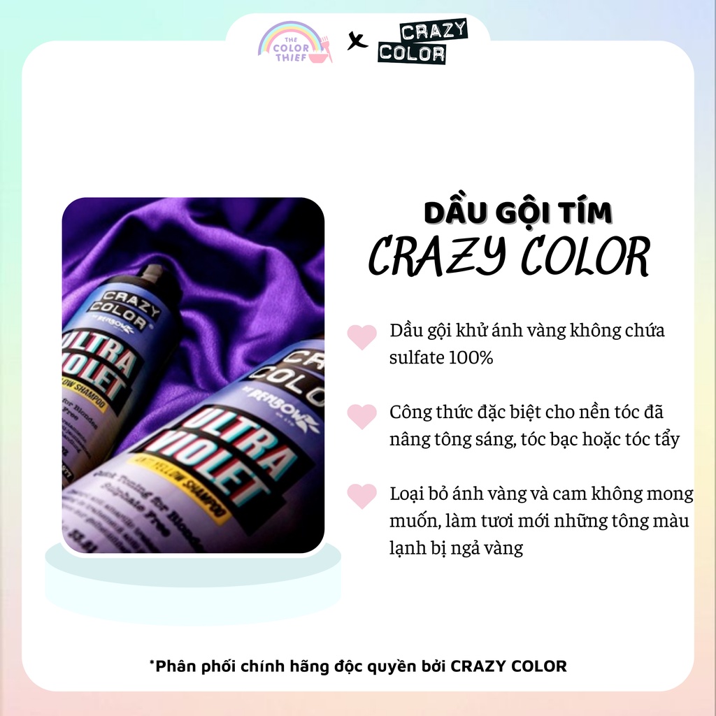 Dầu gội tím Crazy Color Ultra Violet khử ánh vàng cho tóc tẩy - The Color Thief
