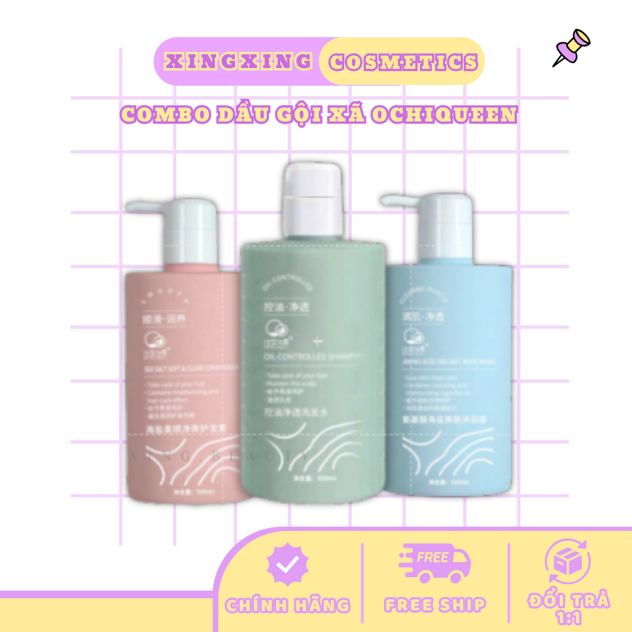 [HỎA TỐC] Combo dầu gội, sữa tắm, dầu xả nước hoa muối biển ORCHIDQUEEN 500ml, loại bỏ gàu hương thơm lâu cho phái nữ
