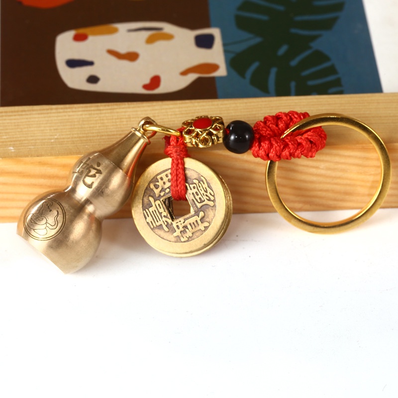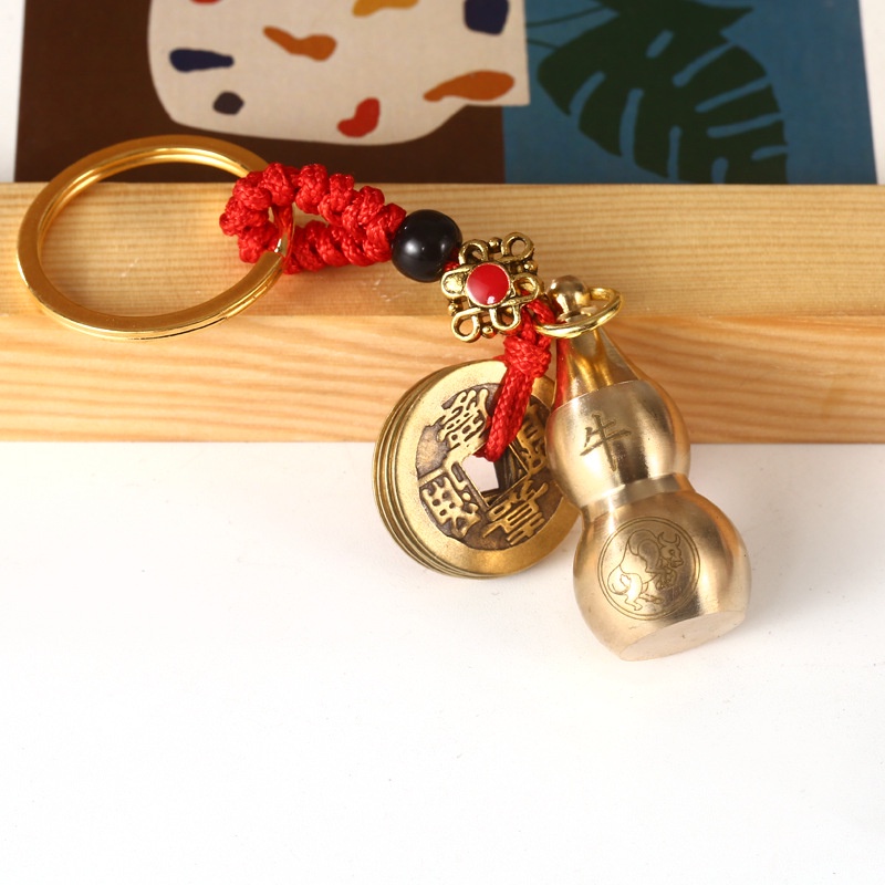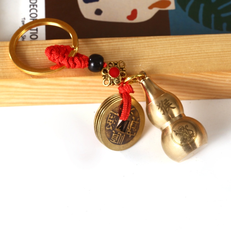 Móc Khóa đồng hồ lô 12 con Giáp phong thủy kèm 5 đồng xu Thu hút tài lộc May Mắn thuuhaa1904 ( hồ lô, xu, khoen)