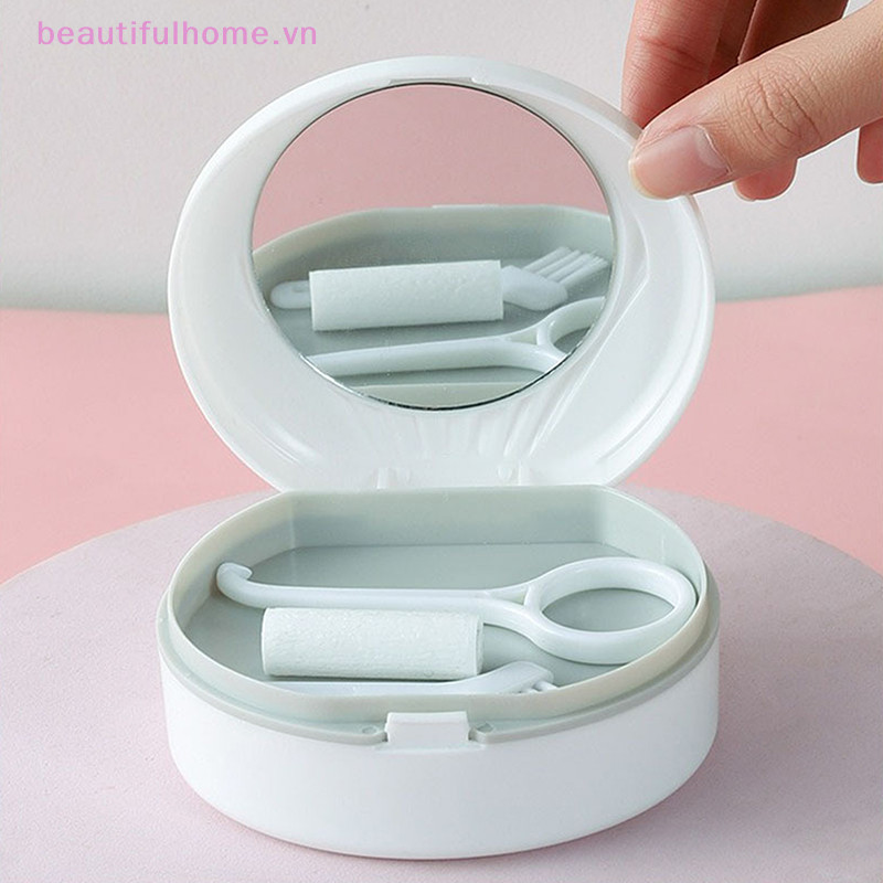 [Beautifulhome] Hộp lưu trữ niềng răng hai lớp Hộp đựng ngâm răng vô hình Làm sạch răng giả Đai di động có gương [làm đẹp]