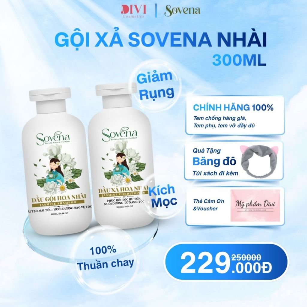 Dầu gội xả thiên nhiên Hoa Nhài Sovena - Không silicone/paraben, hỗ trợ mọc tóc, ngăn rụng, 300ml - Mỹ phẩm Divi