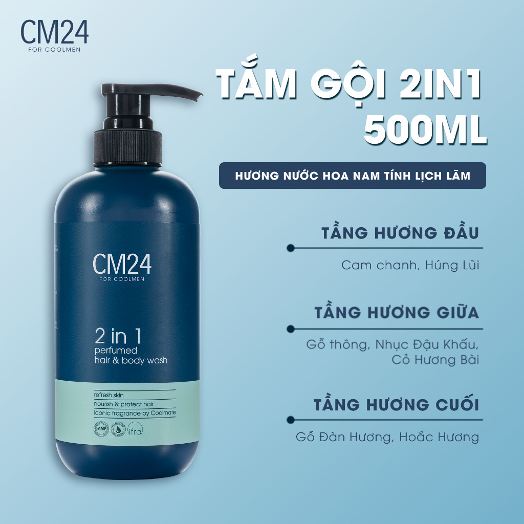 Sữa Tắm Gội Cho Nam 2in1 Hương Nước Hoa Nam Tính Mạnh Mẽ Thơm Lâu 3 Tầng Hương CM24 FOR COOLMEN 500ml