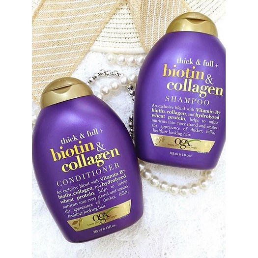Dầu Gội Đầu Làm Dày Tóc, Dưỡng Tóc Bồng Bềnh Chắc Khoẻ OGX Thick & Full + Biotin & Collagen Shampoo 385ml