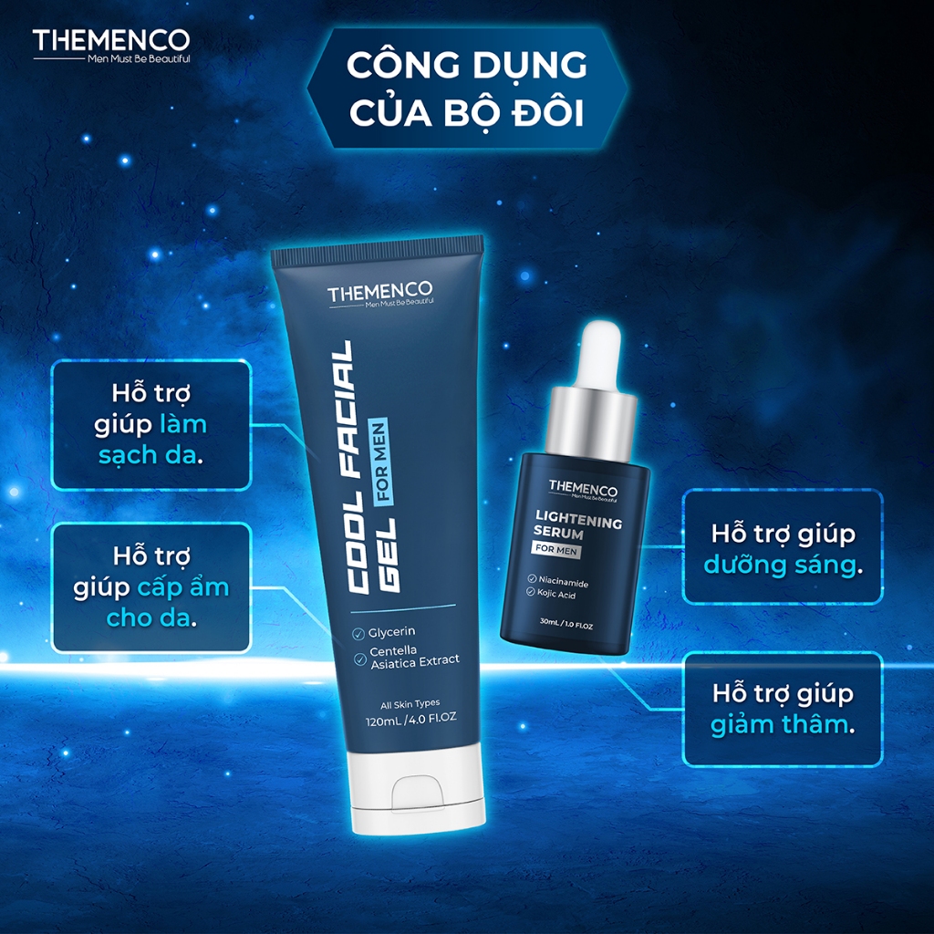 Combo Hỗ Trợ Giúp Giảm Thâm Dành Cho Nam Giới TheMenco Lightening Serum 30ml và Cool Facial Gel 120ml