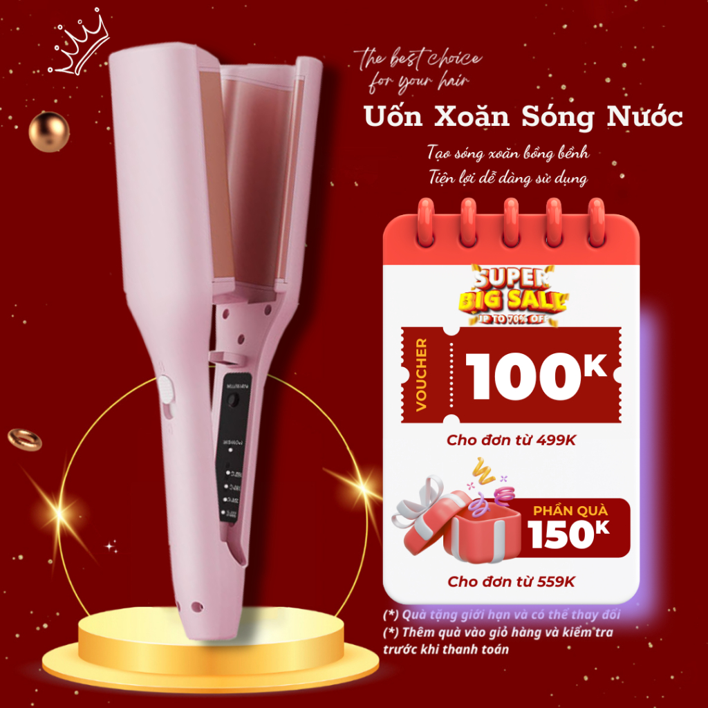 Máy Uốn Tóc Xoăn Sóng Nước Hippie 4 Chế Độ Nhiệt, Máy Tạo Kiểu Tóc Xoăn Tích Hợp Ion Bảo Vệ Tóc Hư Tổn - Hippie 32